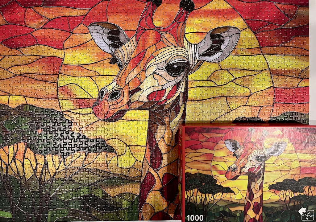Such a beautiful image. Colors made it challenging, in a good way, but love the quality and unique piece shapes. Highly recommend.